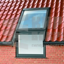 Карнизное окно FAKRO располагается в верхней части фасада и предназначено для установки в группе со стандартным мансардным окном, которое монтируется непосредственно в крыше.