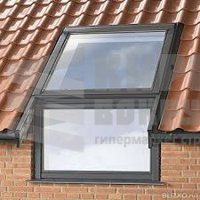 VFE - вертикальный фасадный элемент с открыванием по нижней оси. Устанавливается в вертикальную стену прямо под мансардным окном VELUX. Управляется с помощью ручки, расположенной в верхней части фрамуги. Вертикальное карнизное окно для установки в комбинации с мансардным окном VELUX (размером 78х98, 78х118, 78х140, 78х160, 94х140, 114х118, 114х140)